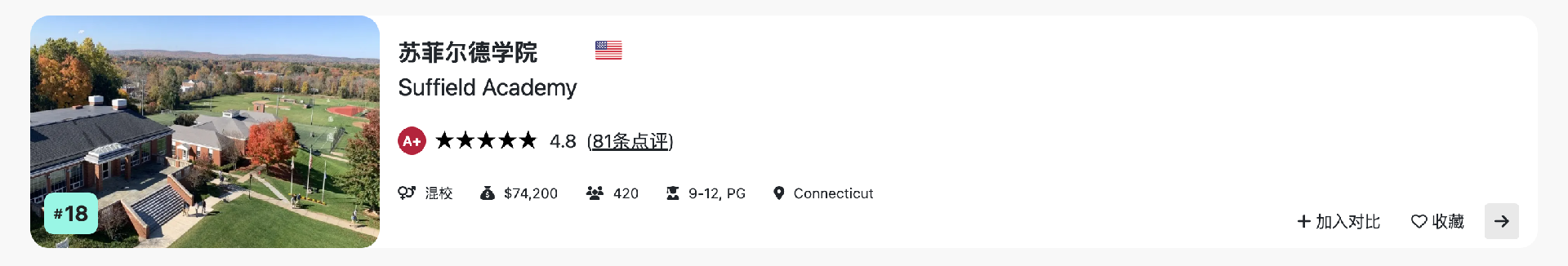 在 2026 年 FindingSchool 私立寄宿美高排名中,萨菲尔德中学位列第 18 名。