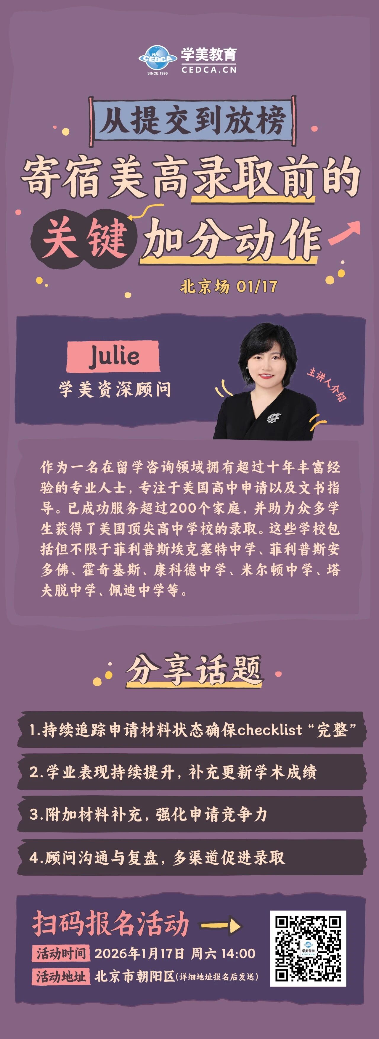 「北京·线下活动预告」从提交到放榜:寄宿美高录取前的关键加分动作