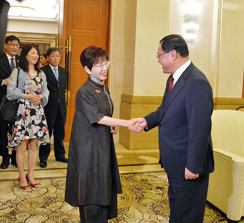 上海市委书记李强今天(7月12日)会见了中国国民党前主席、中华青雁和平教育基金会董事长洪秀柱一行。