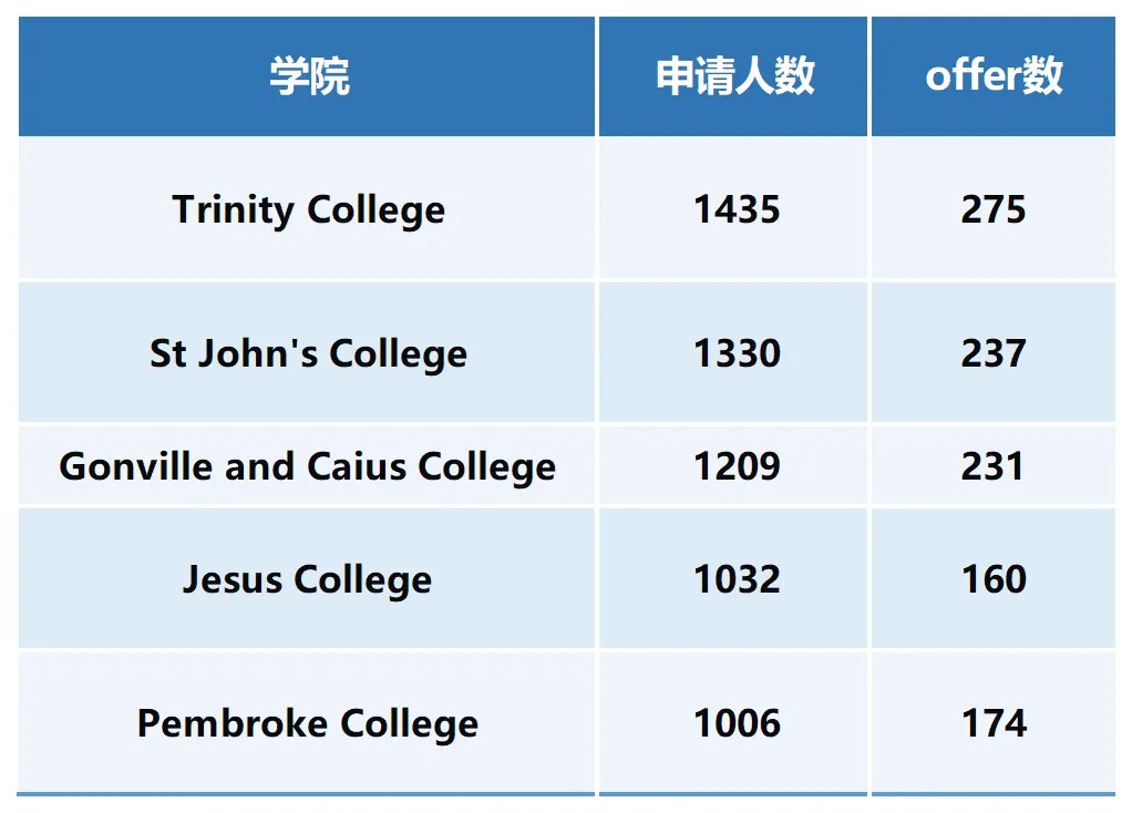 • St John's College:收到 1330 人申请,发出 237 封Offer