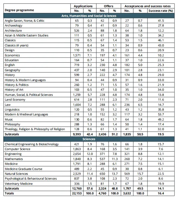 整体Offer率也从去年的21.2%小幅上涨至21.4%,虽然不多,但也说明剑桥并没有“收紧”录取率。
