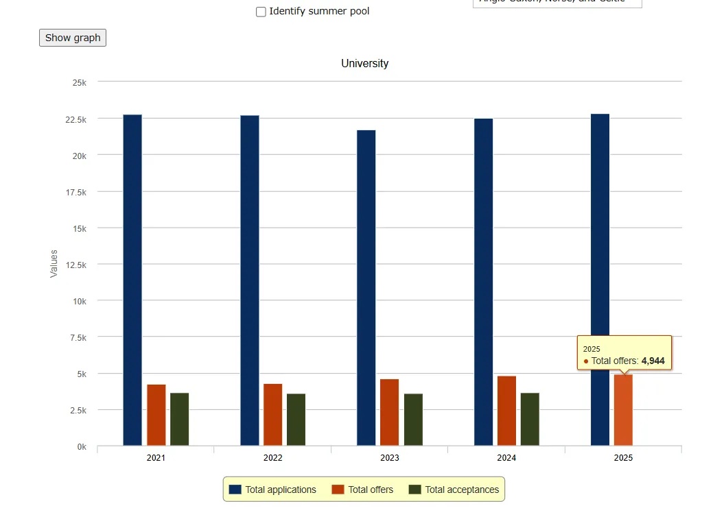2025 申请季共有 22817 名申请者递交了申请,剑桥共发出 4944 封 Offer。