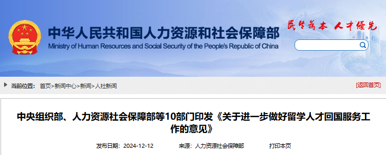 早在去年12月,十部门联合发布《关于进一步做好留学人才回国服务工作的意见》吸引更多留学人才回国工作、创业和为国服务: