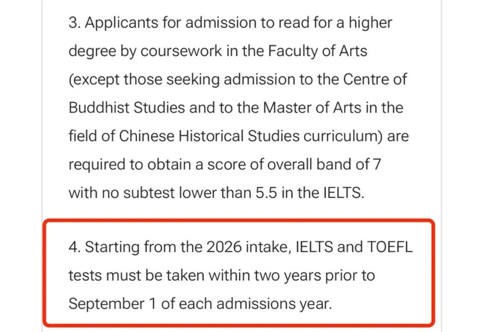 语言成绩新保质期:雅思/托福须在开学的 2026-09-01 仍处 2 年有效期内——即最早只能拿 2024-09-01 之后的成绩。