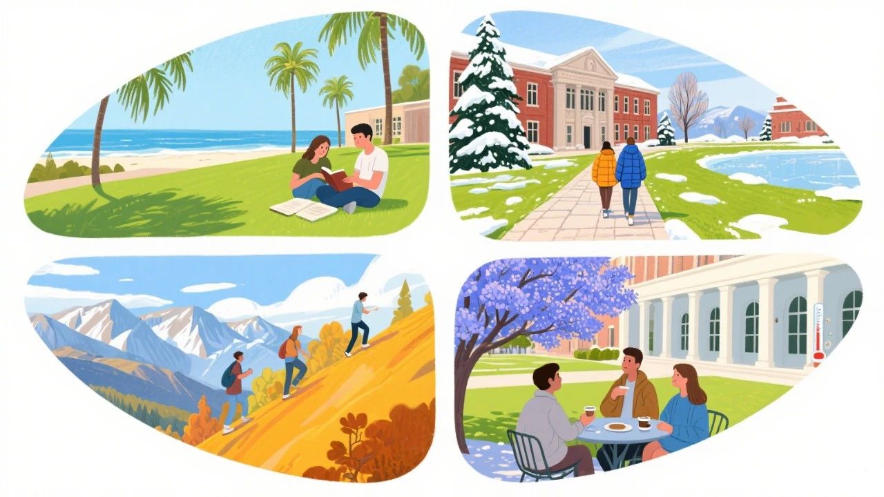美国地域广阔,不同地区的气候和自然景观差异较大。一些学生可能更适应温暖湿润的气候,如加州地区;而另一些学生则对四季分明、有着丰富雪景的东北部地区情有独钟。在选择学校时,要充分考虑孩子对自然环境的喜好和适应能力。例如,对于喜欢户外运动的学生来说,位于山区或海滨的学校可能提供更多的户外活动机会,如滑雪、登山、冲浪等;对于对气候较为敏感的学生,则需要避免选择极端气候地区的学校,如常年高温的南部部分地区或冬季严寒的中西部地区。
