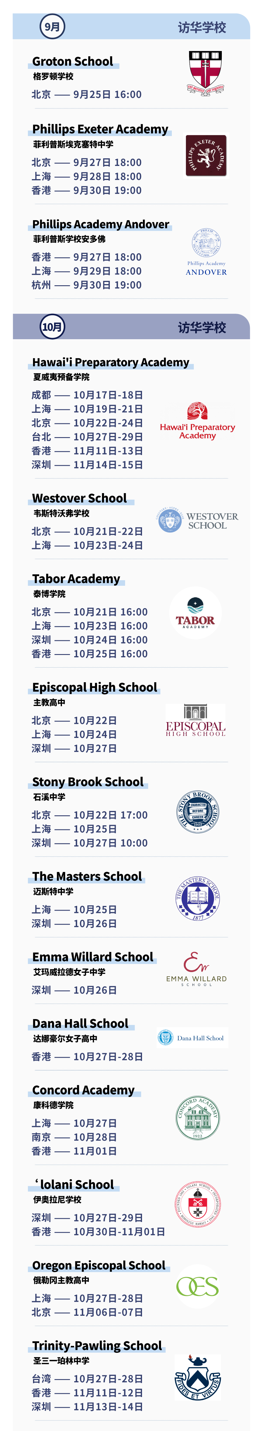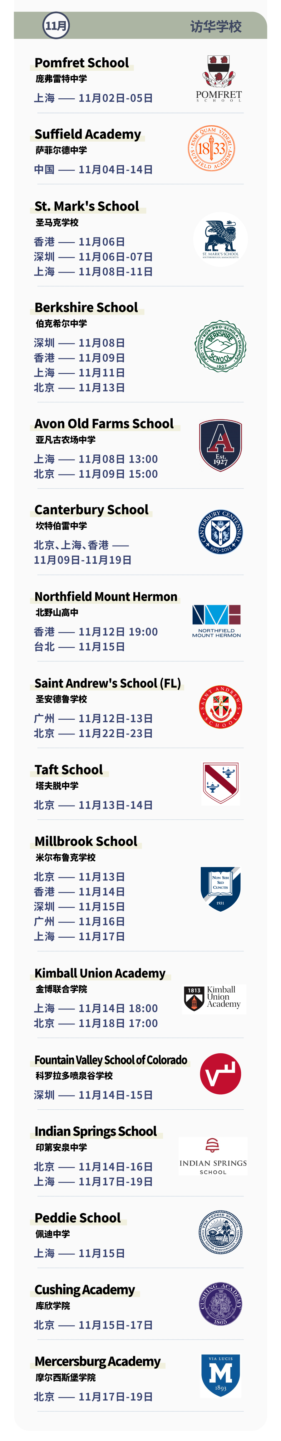 在申请季,家庭往往需要兼顾各方面的准备与挑战。若在过程中遇到任何申请相关的问题,都欢迎随时向学美咨询。与此同时,学美也将持续为大家持续更新寄宿美高招生官访华的最新信息,帮助大家提前做好准备,把握宝贵机会!