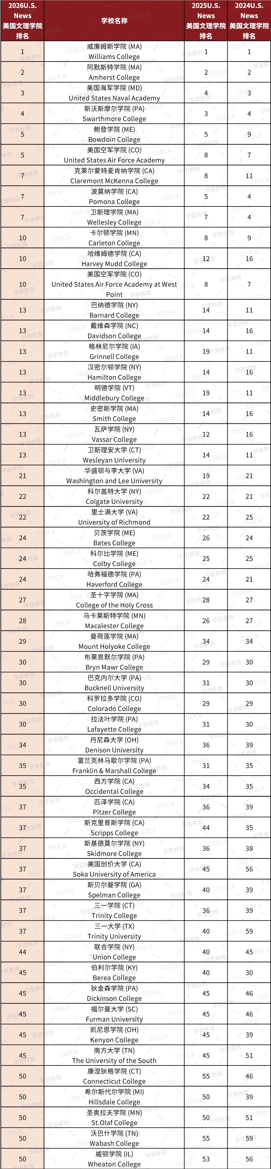 2026 U.S. News 美国大学排名于 2025 年 9 月 23 日重磅发布!作为全球最受关注、同时也**争议的榜单之一,它一直在高等教育领域拥有巨大影响力。学美特别整理了 2024–2026 U.S. News Top100 排名与2026年QS世界大学排名对比,以及还整理了2024–2026 U.S. News文理大学排名对比,为正在准备 2026 Fall 申请的同学和家庭提供参考。快来看看,今年的榜单有哪些意想不到的变化?