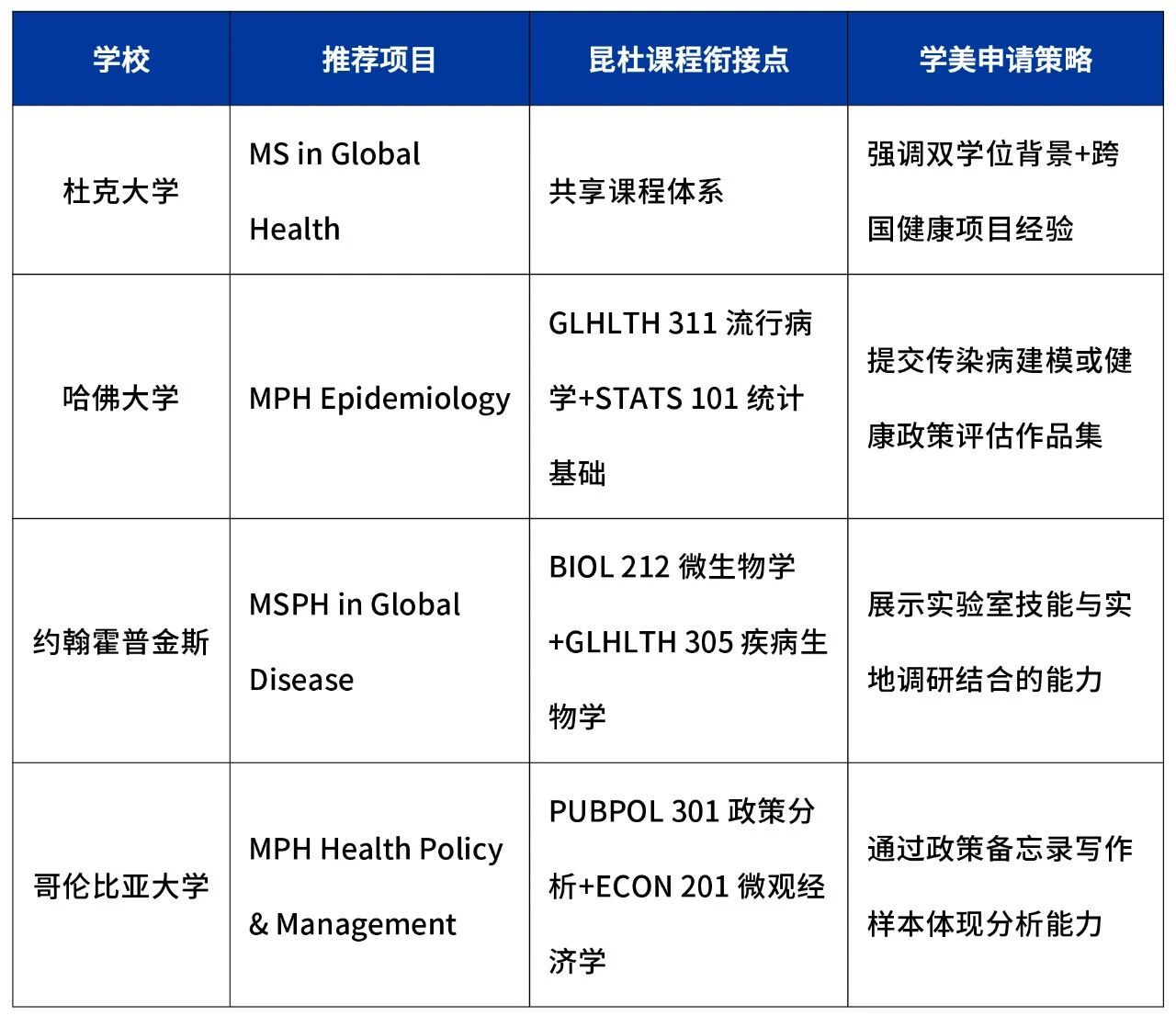 1)材料准备:例如,若申请杜克全球健康硕士,则建议利用双学位优势申请推荐信豁免;若申请哈佛MPH,则建议准备健康数据分析作品集。