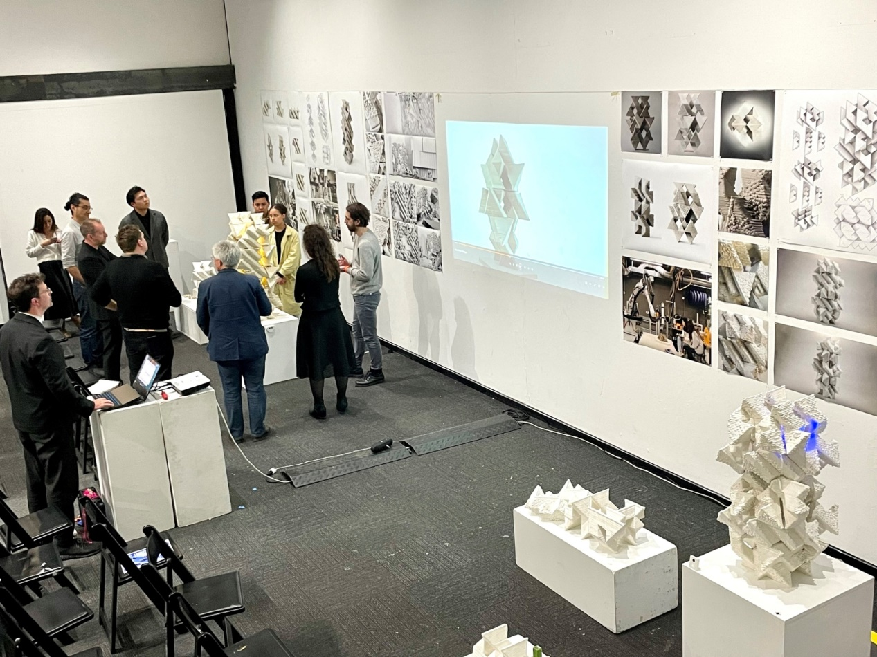 外立面采用多层 FRP 与玻璃结合系统,实现“日夜两种表情”。该部分实验原型由 Weitzman 建筑与材料实验室师生共同测试完成。