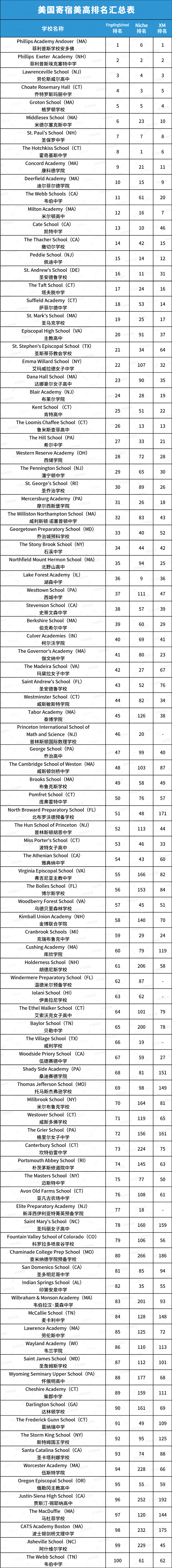 为了帮助家长更全面地了解美高格局变化,学美教育特别整理了三大榜单: