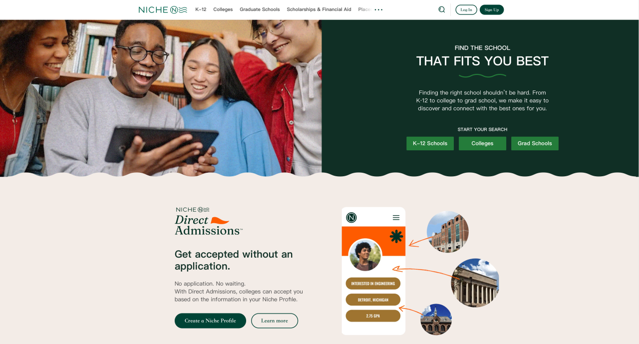 Niche, Inc.是一家总部位于美国的教育与生活信息平台,主要服务包括:K12 学校排名与点评、大学排名与申请参考、社区与生活质量评分、用户评价系统。