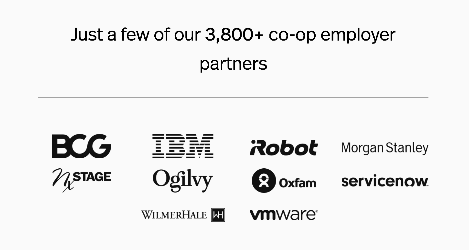 东北大学约有96%的毕业生在毕业9个月之内找到了工作或者就读了研究生,约58%的学生被前Co-op的公司录取,约33%的毕业生起薪高于全国的人均工资。如果对东北大学的Co-op项目比较感兴趣,可以从下面的链接查看更多的信息:https://www.northeastern.edu/experiential-learning/co-op/