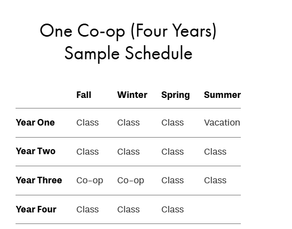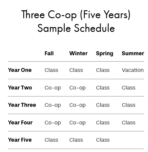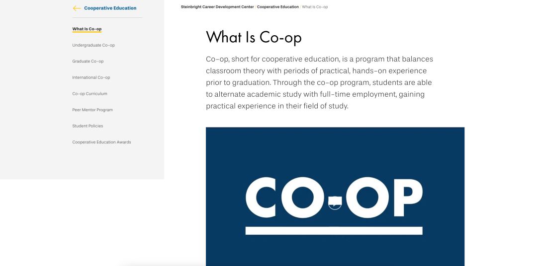 “Co-op项目” 是 “Cooperative Education Program(合作教育项目)” 的简称,是一种将课堂学习与带薪实习相结合的教育模式。Co-op项目的目标是让学生把课堂知识应用到实际工作中,提前适应职场、积累行业经验,为毕业后就业打下基础。