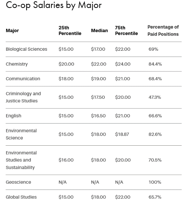 下面,让我们了解一下这所学校文理学院Co‑op的薪资水平: