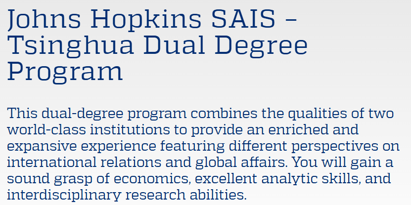 偏研究型的项目,因此也更喜欢有科研经历的申请者。需要分别通过清华和JHU双方考核。