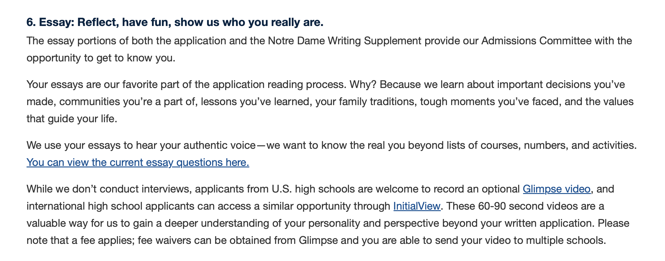 从 2025 申请季起,圣母大学新增一个可选环节:Glimpse Video(短视频自我介绍),特点如下: