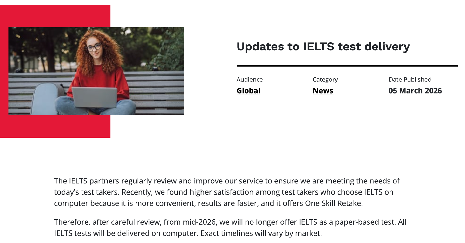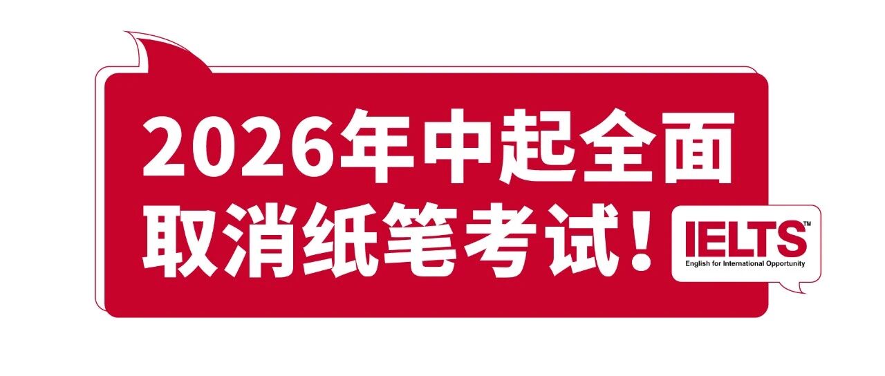 【导语】2026年3月5日,雅思官方发布重磅消息:自2026年年中起,全球范围内将全面取消纸笔考试,接下来4-6月将只留有...