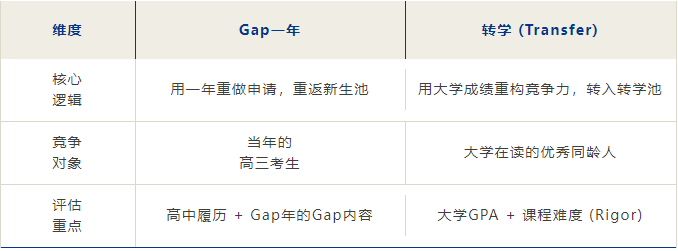 于是,一个问题被反复抛出来:究竟是Gap一年重申,还是先入学,日后再转学?看起来都是“重来”,本质却是两条完全不同的路径。